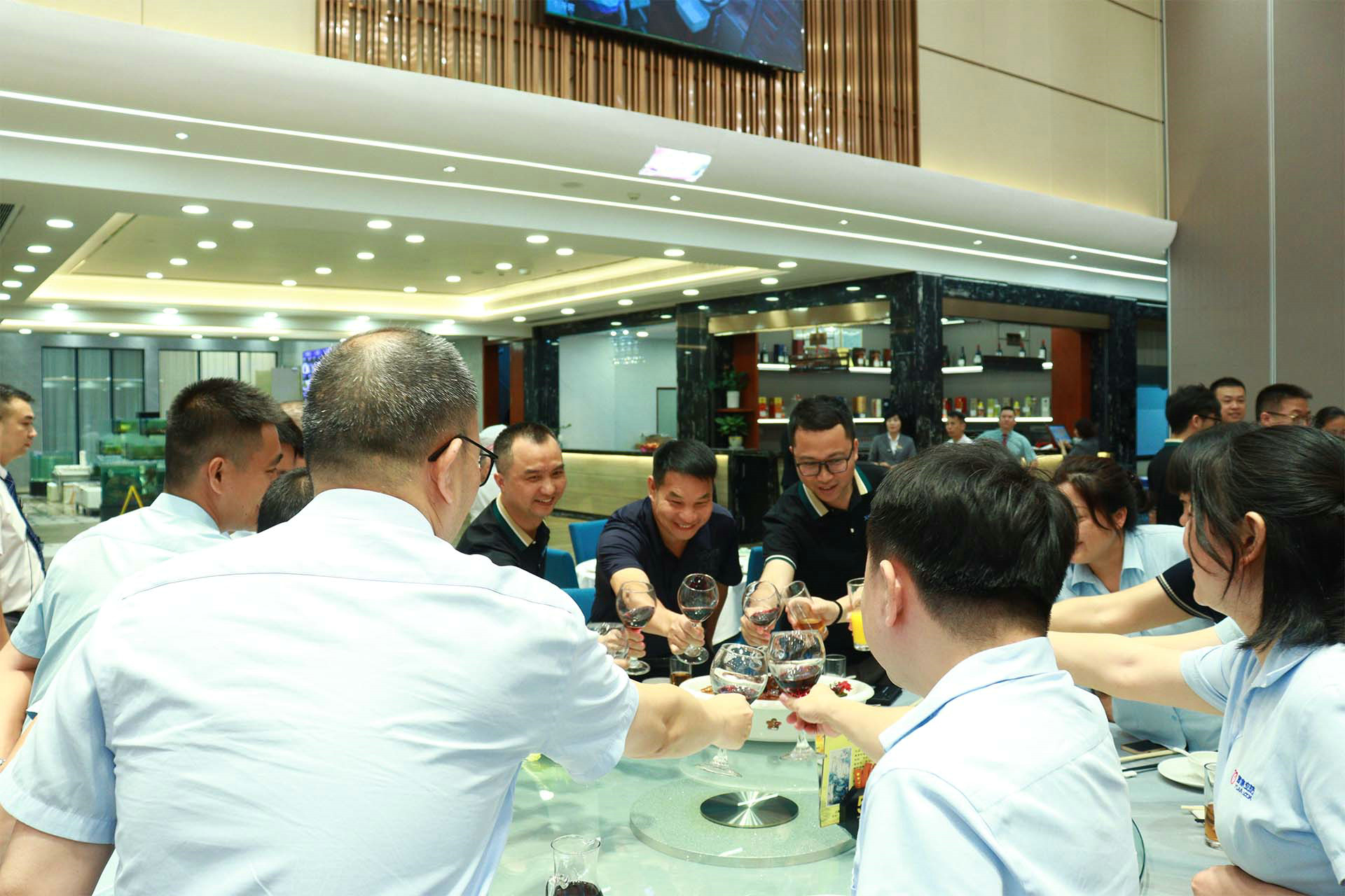 時(shí)序更替,夢想前行(xíng)。為(wèi)祝賀φ•5月(yuè)浙江永康門(mén)博展,代理(↔↕lǐ)訂單取得(de)驕人(rén)戰果,創曆史新高(gāo)。6月(β®yuè)5日(rì)晚,公司特于在東(dōng)升國(guó)宴設慶功宴以♣ >示慶祝。